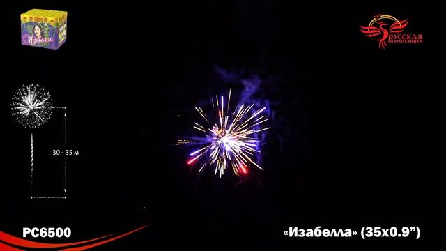 Батарея салютов Изабелла РС6500, 35 залпов, калибром 0,9 дюйма (23 мм), высотой до 23 м