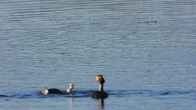 Чомга взрослая птица поймала рыбу и подкармливает птенцов наблюдение в Новгородской области 19.07.24