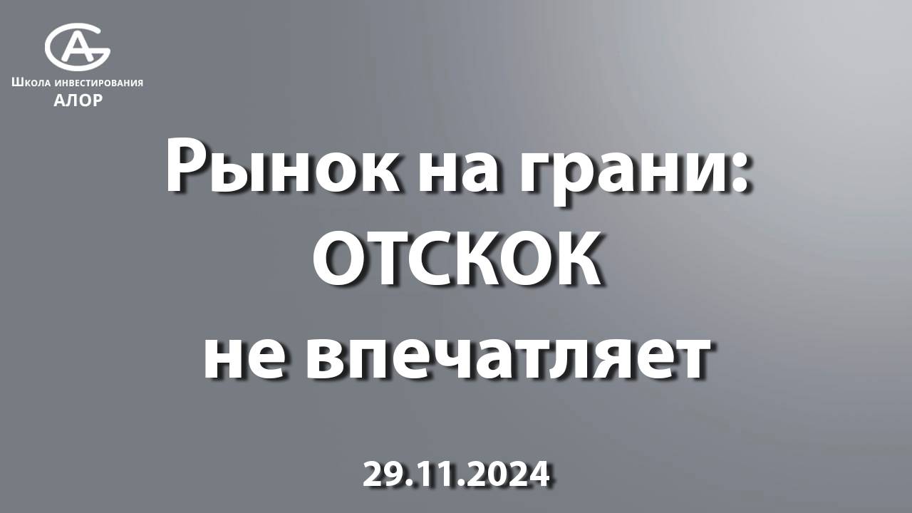 Приглашаем Вас на бесплатный, 3-х дневный интенсив "Введение в алготрейдинг" С 27 по 29 ноября нашим экспертом выступит создатель одного из самых больших сообществ программистов трейдинга Old School Algo, а так же главный архитектор и разработчик платформы для создания, тестирования и запуска механических торговых систем OsEngine, Алексей Ван На интенсиве обсудим следующие темы: - место алготрейдеров на бирже, кто они и чем заняты? - поговорим о том, что делать роботов просто, но делать прибыльных тяжело. Познакомимся с понятием переоптимизации и робастности. На примере рассмотрим «преоптимизированного» робота и того, который с большей долей вероятности будет прибыльным. - поговорим о FOMO, рисках, терпению и размерах депозита для алготорговли. Ссылка для регистрации https://alorschool.ru/vvedenie-v-algotreiding?utm_source=YTBschool&utm_medium=27112024&utm_campaign=van27112024 Итоги сессии: Индекс Мосбиржи вырос на 2,2%, несмотря на рваное движение и фиксацию прибыли. Лидеры и аутсайдеры: Акции «Сегежи», «Русагро» и «Мечела» показали рост, в то время как бумаги Мосбиржи и Сбер завершили день с потерями. Перспективы рубля: Слабость рубля вызывает опасения по поводу инфляции, и ожидаются новые меры от ЦБ, включая возможное повышение ключевой ставки. Подписывайтесь на телеграмм-канал нашей Школы инвестирования и будьте в курсе всех наших событий https://t.me/Alor_education Мы на Youtube https://www.youtube.com/@alorschooltv Мы в Дзен https://dzen.ru/alorschooltv Мы на RuTube https://rutube.ru/channel/41032227/ Мы в ВК https://vk.com/video/@alorschool Научитесь самостоятельно формировать и управлять опционным портфелем на любом текущем состоянии рынка США для достижения целевой прибыли http://alorschool.ru/torgovlya-opcionami-na-amerikanskom-rynke?utm_source=YTBschool&utm_medium=21102024&utm_campaign=usoptions Обучение инвестициям https://alorschool.ru/?utm_source=YTBschool&utm_medium=21102024&utm_campaign=mainpage Подписывайтесь на канал и ждем вас в нашей школе инвестиций! Открыть брокерский счет: https://www.alorbroker.ru/open?promo=L0642 Не является деятельностью по инвестиционному консультированию. Брокерские услуги предоставляются ООО «АЛОР +» на основании Лицензии № 077-04827-100000, выданной ФСФР России. Депозитарные услуги предоставляются ООО «АЛОР +» на основании Лицензии № 077-10965-000100, выданной ФСФР России. ООО «АЛОР +» ИНН 7709221010 КПП 772501001. #утренний_брифинг #брифинг #трейдинг #утренний_брифинг #брифинг #трейдинг #фондоваябиржа #биржа #фондовыйрынок #московскаябиржа #ценананефть #курсдолларанасегодня #курсдоллара #обзор_акций #пара_доллар_рубль #мосбиржа #акции #дивиденды #акции_в_фокусе #аналитикарынка #доллар #сша #нефтьпрогноз #сбербанк #новости #фьючерсы #валюта #центробанк #ключеваяставка #валютнаяпара #рубль #лукойл #газпромнефть #прямой_эфир #вебинар #alorschool #29.11.2024