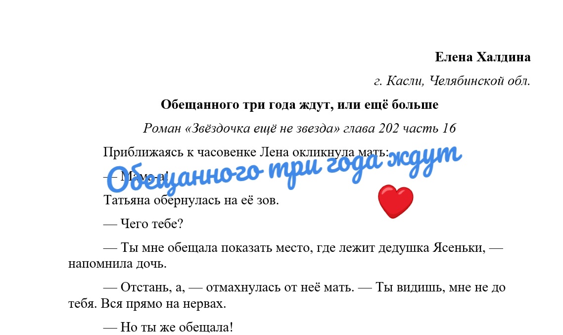 "Обещанного три года ждут" (отрывок из моего романа "Звёздочка ещё не звезда")