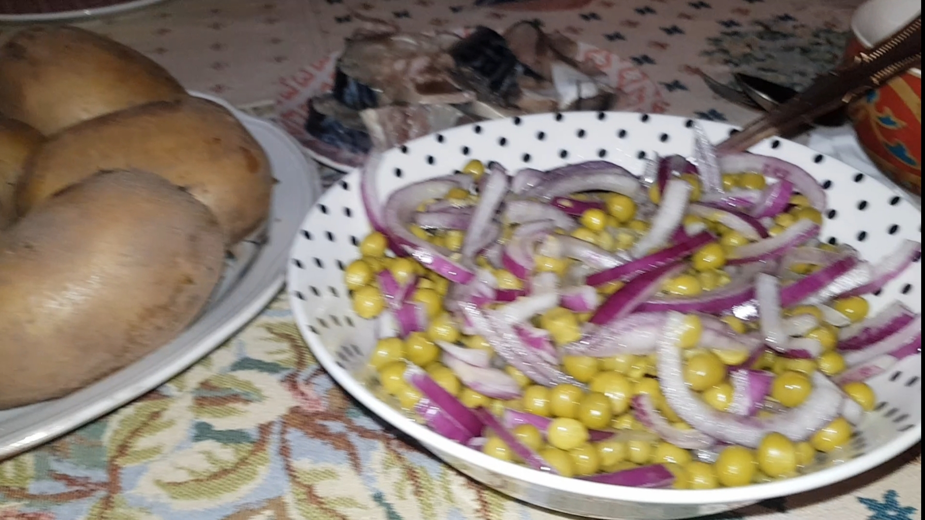 У нас сегодня☕чай с оладушками🥯Посолили рыбку/Ужин крестьянина😀👍