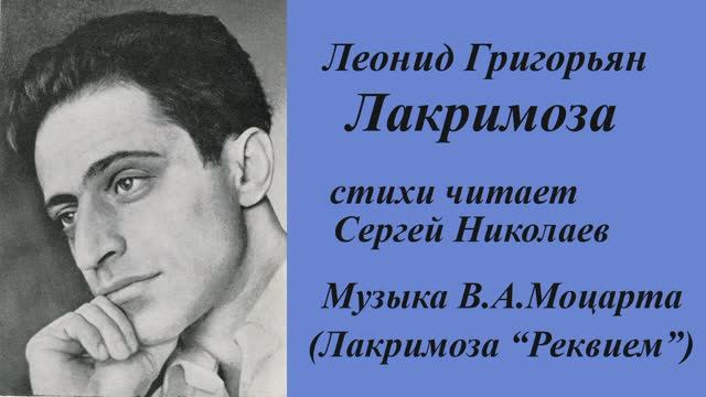К 90-летию ростовского поэта Леонида Григорьяна. Сергей Николаев-автор послесловия к книге стихов Л.Григорьяна "Лягу в два,а встану в три..." читает стихотворение поэта "Лакримоза".Музыка -В.А.Моцарта из "Реквиема".Видеосъемка-Д.Коваленко.Монтаж фильма-В.Новоженин