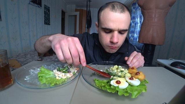 МУКБАНГ ОЛИВЬЕ САЛАТ / ПЮРЕ / ЯЙЦО ВАРЕНОЕ / НАГГЕТСЫ / ОБЖОР Mukbang EATING/ ASMR/ АСМР #949