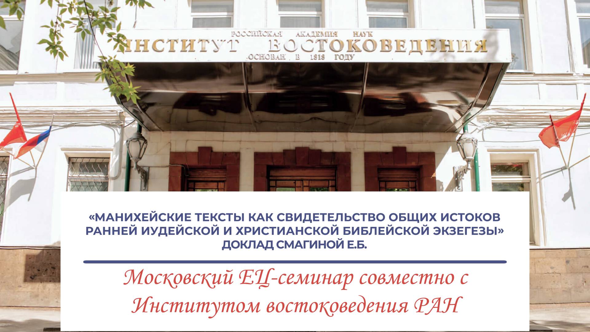 «Манихейские тексты как свидетельство общих истоков ранней иудейской и христианской библейской экзегезы» - доклад Смагиной Е.Б. Доклад состоялся в среду 26 февраля 2025 года на заседании ежемесячного общемосковского Семинара по изучению еврейской цивилизации (ЕЦ-семинара). Смагина Евгения Борисовна - заведующая Отделом истории и культуры Древнего Востока ИВ РАН, кандидат филологических наук. Дискуссионная площадка: "Влияние манихейства на русскую культурно-цивилизационную систему и на русское (русскоязычное) еврейство. Имело ли место такое влияние, и если да, то по каким каналам?" Ведущие: Л. Р. Городецкий, Е. Б. Смагина ————————————————————————————————————————————————————————— Официальный сайт ИВ РАН: https://www.ivran.ru Видеоархив ИВ РАН: https://video.ivran.ru YouTube: https://www.youtube.com/@IVRANru/featured Rutube: https://rutube.ru/channel/24046380/ Группа ВК: https://vk.com/ivranru