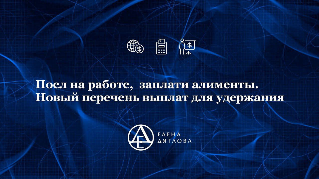 Добрый день, подписчики канала. Тема ролика - удержания по алиментам . 02.11.2021г. обновился перечень выплат. Список расширен видами доходов, с которых удерживаются алименты. В перечень входят: доходы самозанятых, проценты по вкладам, возврат НДФЛ, доход от продажи недвижимости, в рамках предпринимательской деятельности. В старом и новом перечне есть проблемный пункт - обязанность удерживать алименты со стоимости питания, кроме лечебно-профилактического. Какое питание облагается алиментами, по какому принципу, узнайте из ролике Е.М. Дятловой. Е.М. Дятлова - налоговый консультант, эксперт-практик в решении самых сложных вопросов по бухгалтерскому учету и налогообложению с опытом работы 25 лет. Е.М. Дятлова проводит семинары и вебинары по сложным вопросам бухгалтерского учета и налогообложения. Расписание мероприятий и темы найдете на https://buchguru.vip.