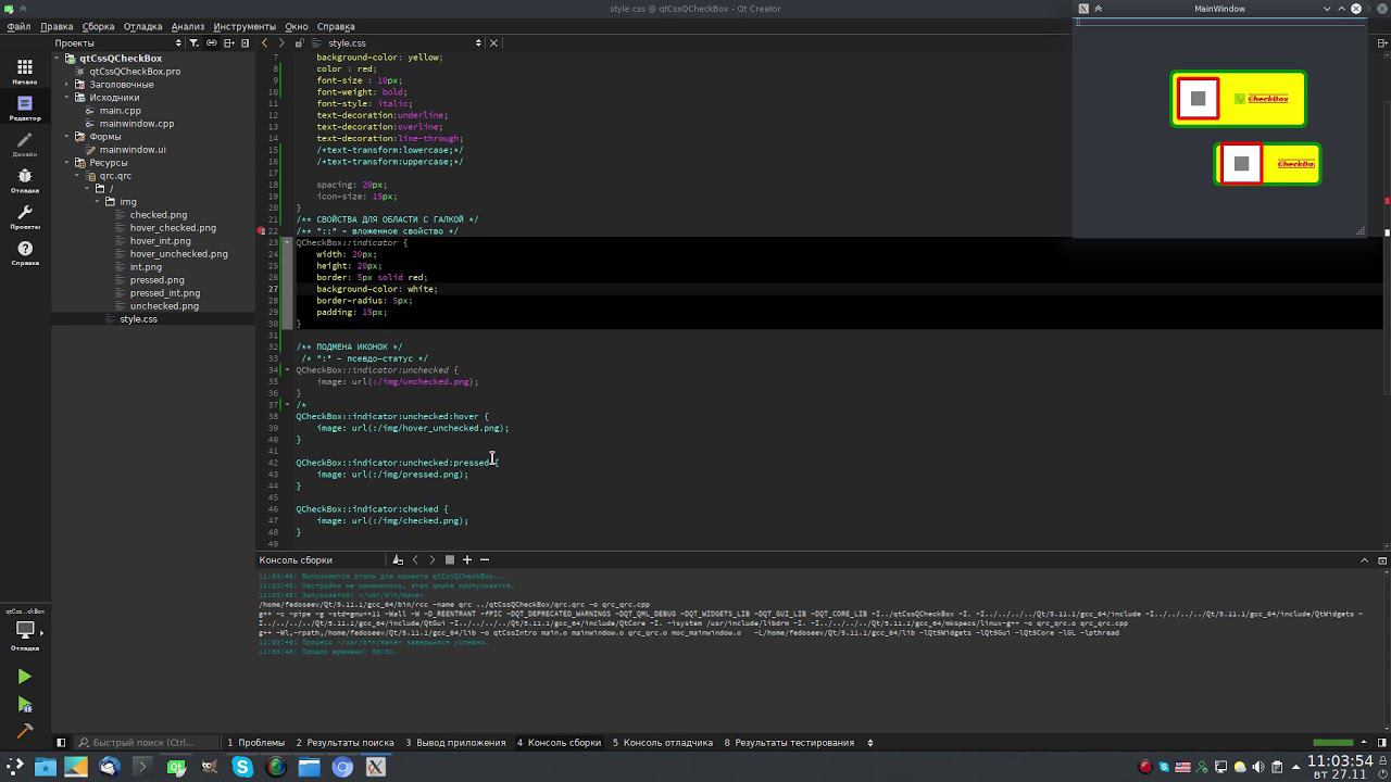 Применение стилей CSS к виджету QCheckBox