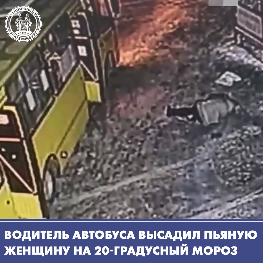 Водитель автобуса высадил сильно поддатую пассажирку на 20-градусный мороз и выкинул её вещи из салона. На видео заметно, что она была в расстёгнутом пуховике и без головного убора, а градус опьянения был такой, что женщину просто не держали ноги. Однако водителя это нисколько не смутило. Представители транспортной компании прокомментировали это так: "Мы отвечаем за пассажира, только пока он в салоне. Если она вышла на улицу и упала — это уже дело полиции".