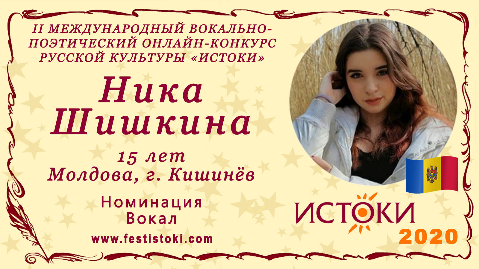 Участник II Международного вокально-поэтического онлайн-конкурса русской культуры «Истоки». Номинация - Вокал. Песня "Любимый мой" из кинофильма "Пока станица спит". Автор ЮТА. Сайт: www.festistoki.ru / www.festistoki.com E-mail: festistoki@mail.ru
