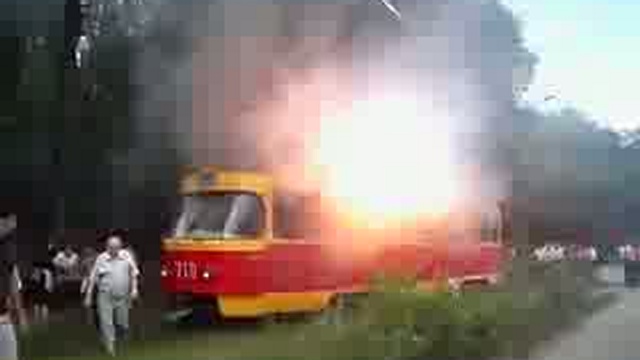 Трамвай немного искрит