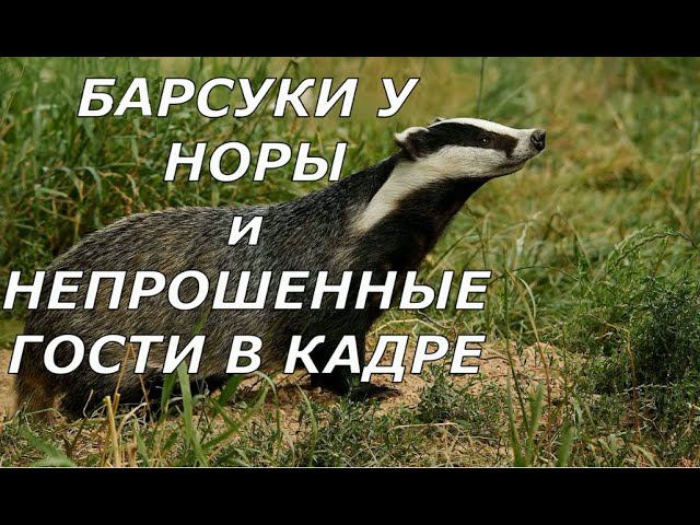 Барсуки у норы и непрошенные гости. Видео с фотоловушки.