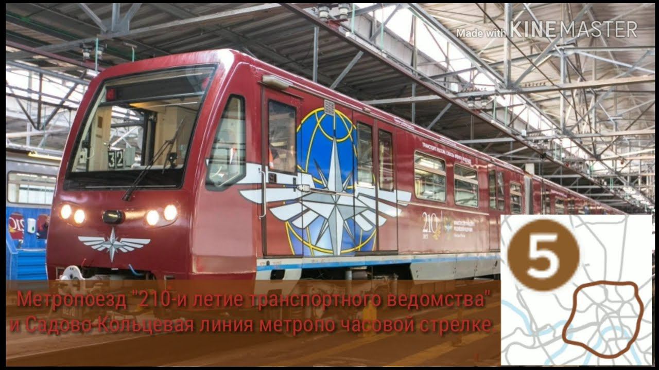 Метропоезд 210-и летие транспортного ведомства и Садово-Кольцевая линия метро по часовой стрелке