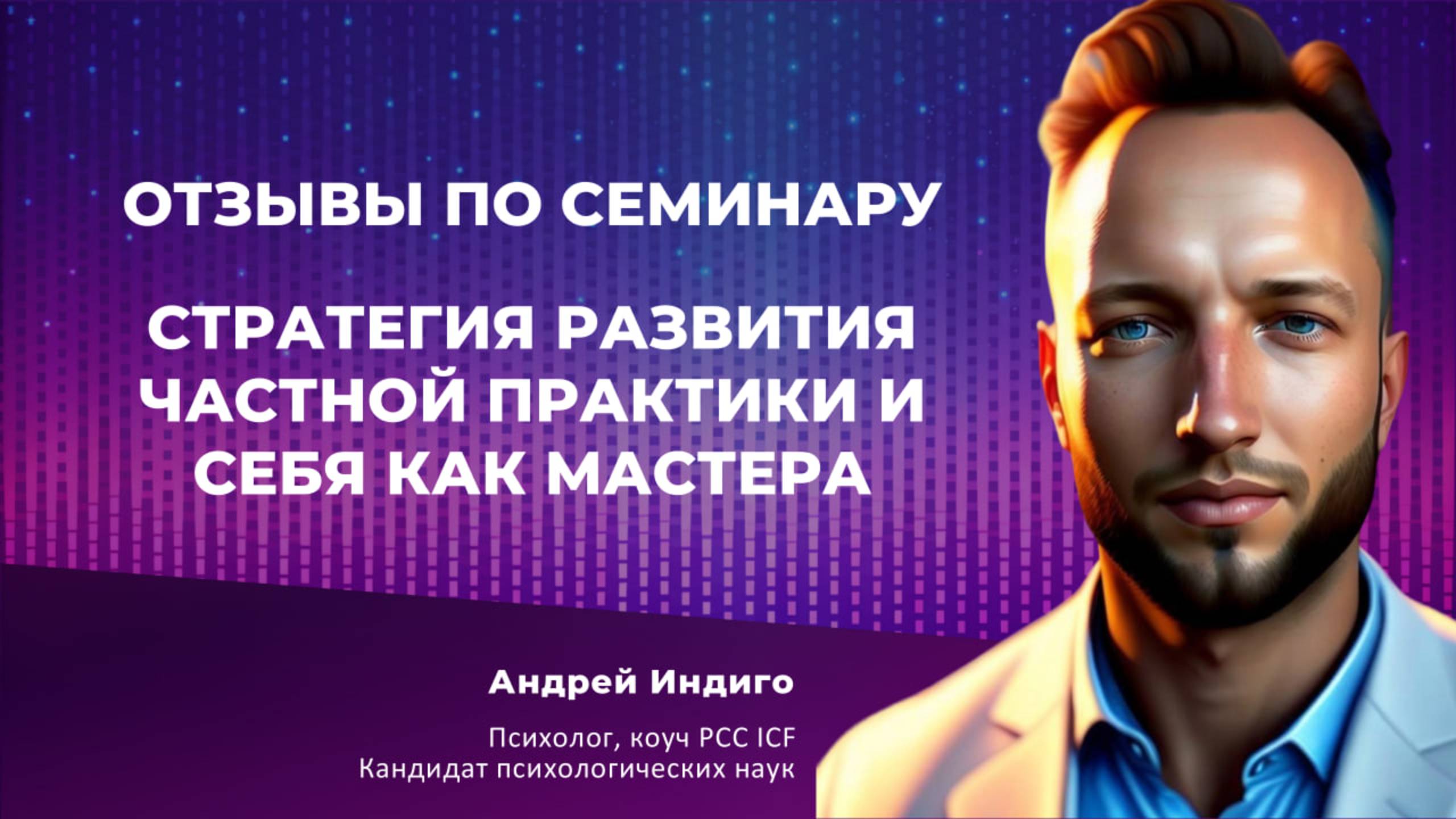Ссылка на семинар "Стратегия развития частной практики и себя как мастера" - https://andreyindigo.com/seminar10 Узнать подробнее и записаться семинар: http://t.me/Indigopeople_assistant Записаться на личную диагностическую сессию: https://andreyindigo.com Закрытая группа "Практика на миллион" для психологов и коучей: https://t.me/+hlCZO6w-hBoyZTYy Подписывайтесь на мои социальные сети: Телеграм: https://t.me/AndreyIndigo INST: https://www.instagram.com/andrey.indigo/ ВК: https://vk.com/andrey.indigo