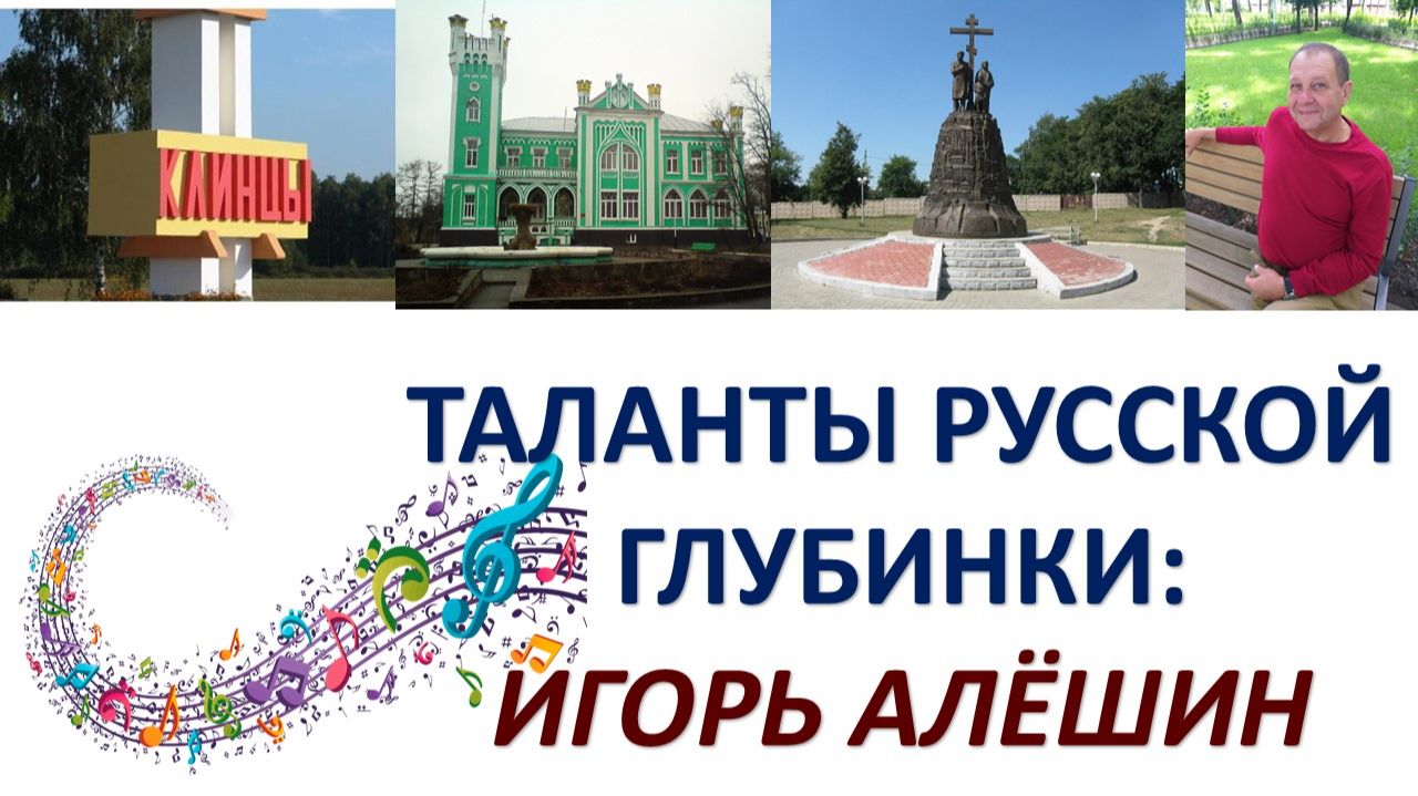 Алешин Игорь Алексеевич. Автор более 100 песен в различных жанрах. Родился : Брянская обл. г.Клинцы 1963 г. Мать 89 лет. Учитель. Отличник народного образования СССР(это как сейчас заслуженный учитель). 1980г закончил школу (только 2 четверки). Брянский институт транспортного машиностроения. Инженер-конструктор тепловозов. 4 курса . Ушел в СА. Командир Сау 2С3.Сержант. Минская обл. Печи. Ансамбль песни и пляски " Тачанка" После СА закончил училище культуры, дирижер. Худрук заводского клуба, 9 лет директор городского парка культуры и отдыха. В 2018 ушел на пенсию по льготе о радиационой защите. До 2003 г. параллельно работал в ресторанах музыкантом. Песни пробовал писать в институте. Но , конкретно, и тексты, и музыку - с 2019 года. Появилась техническая возможность. Тексты стараюсь писать простые, добрые и понятные. Аранжирую ближе к стилистике 80-90. В 2022г. пригласили работать в школу, а затем в Центр детского творчества. Стал писать песни для детей. 5-6 летние дети поют с удовольствием. Счет пошел на второй десяток. Особо хорошо зрители принимают "Семь футов под килем" (о ВМФ), "Россия навсегда", "За столом победным", "Русский крымский брют" (время , наверное, этих песен) и , конечно, детские. Хотя, поп-песни "Лепестки увядших роз", "Время пустоты", "Я тебе подарю", "Твое признание" звучат в общественных местах по всей РФ и на стримингах. Детская песня "Мамочке , любимой!" в исполнении 5-летней Жени Шулик звучит 5ый месяц в детских развлекательных центрах, аквапарках, кафе. Снимаю видео о родном крае , о мероприятиях для детей. Некоторые набирают до 100 000 просмотров.