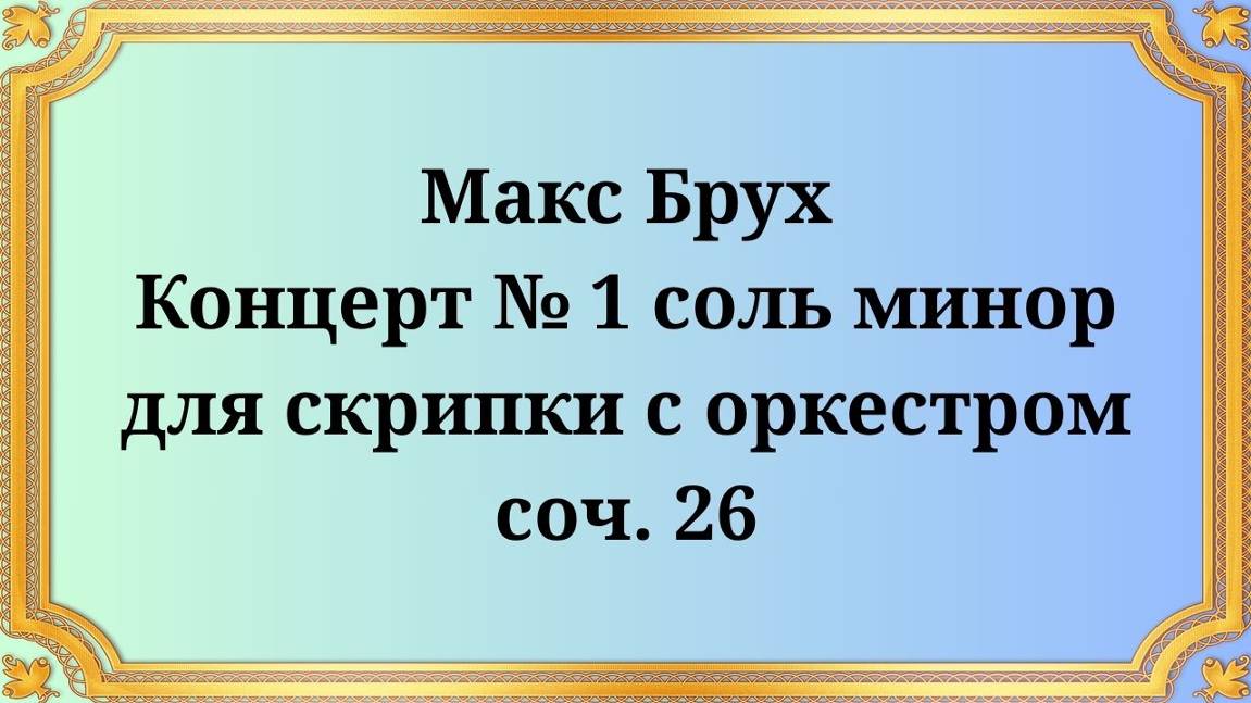 Макс Брух Концерт № 1 соль минор для скрипки с оркестром, соч. 26