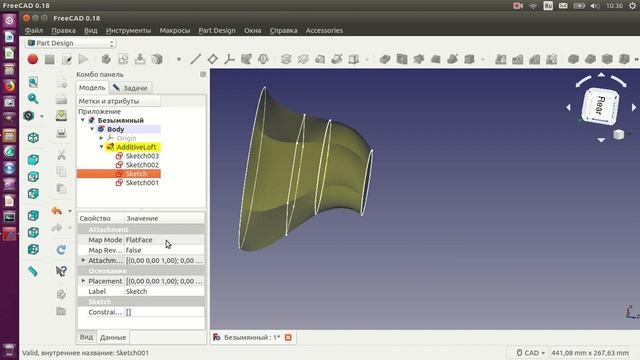 FreeCad обтяжка профилей. Переход форм
