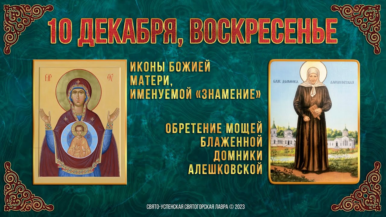 Иконы Божией Матери, им. «Знамение». Обрет. мощей блаж. Домники Алешковской. 10.12.2023 г. Календарь