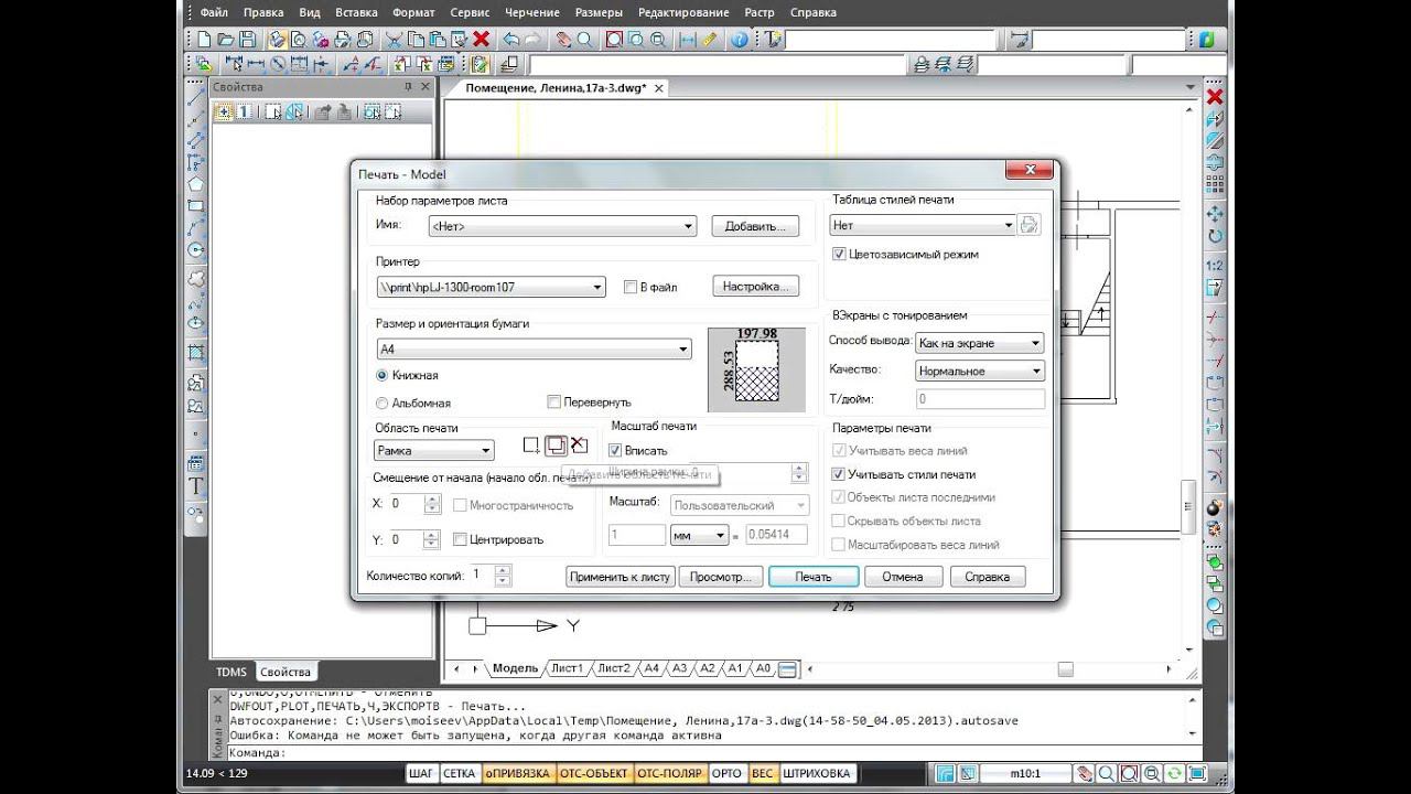 nanoCAD. Печать