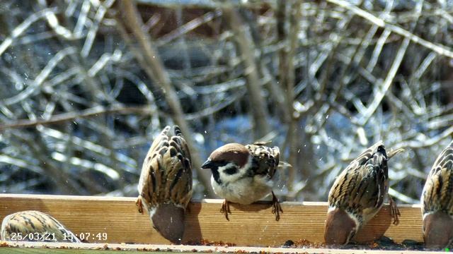 Воробьи в кормушке -