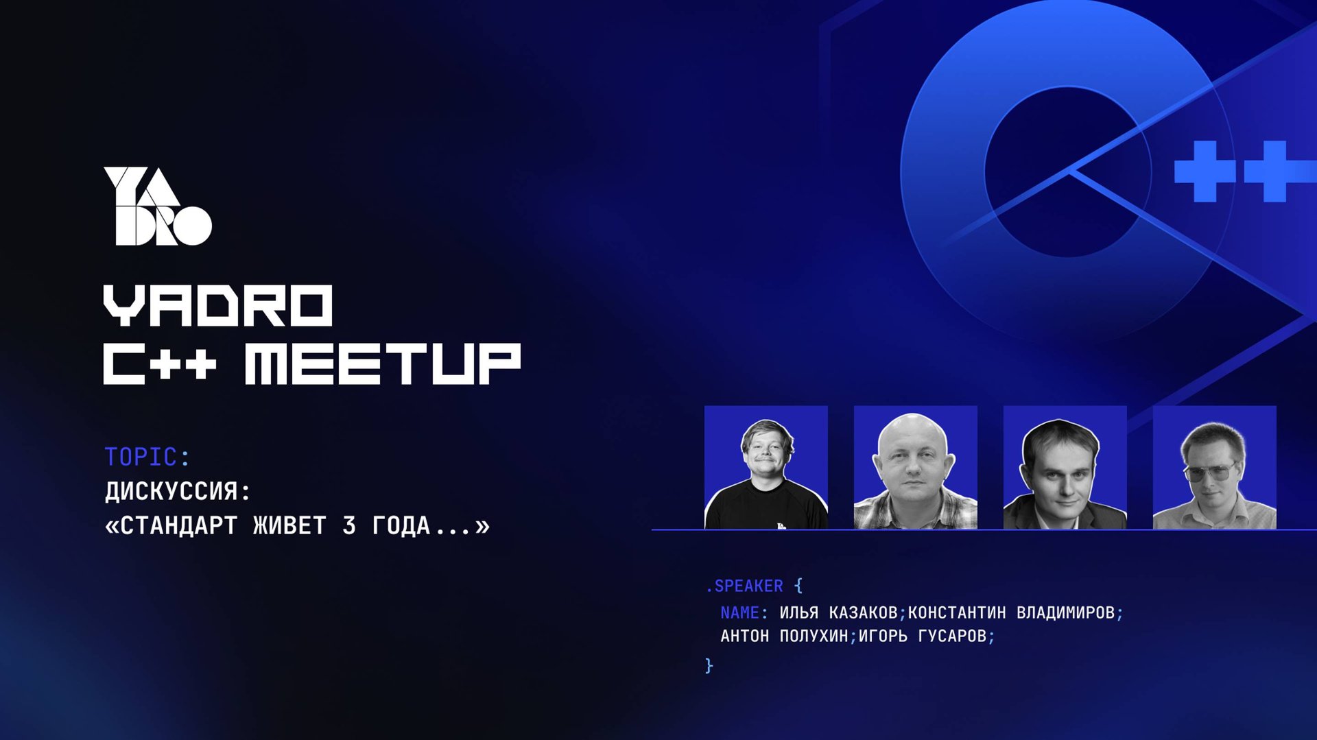 Дискуссия: «Стандарт живёт 3 года…» Довольны ли мы реализацией текущих стандартов? Довольны ли тем, как быстро компиляторы внедряют фичи новых стандартов? Может, стоит обратить внимание на подходы других языков в release cycle? К примеру, на Rust editions? Эксперты: - Константин Владимиров Руководитель отдела компиляторов и инструментов разработки, Syntacore - Антон Полухин Эксперт-разработчик C++, руководитель группы Общих Компонент в Техплатформе Екома и Райдтеха Яндекса - Илья Казаков Разработчик в команде систем хранения данных, YADRO - Игорь Гусаров Эксперт по разработке ПО, Лаборатория Касперского