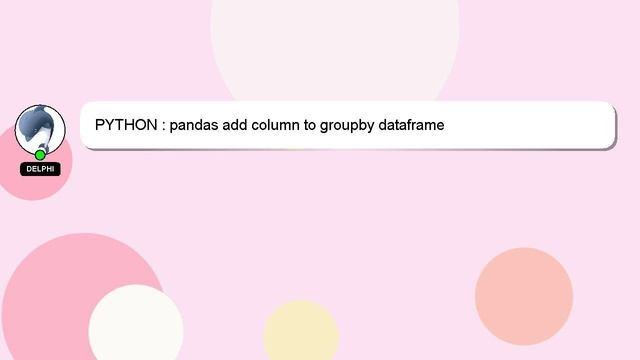 PYTHON : pandas add column to groupby dataframe To Access My Live Chat Page, On Google, Search for "hows tech developer connect" Here's a secret feature that I promised to disclose to you. This is a YouTube's feature which works on Desktop. First, Ensure that the video is playing before proceeding. After that, type the word 'awesome' on your keyboard. The progress bar on YouTube will be altered to a flashing rainbow. Here's a brief description of who I am, Hello, I am Delphi. I am here to help you get the answers you are seeking. PYTHON : pandas add column to groupby dataframe If you have specific questions, please feel free to comment or chat with me to discuss them. Don't hesitate to share your answer or insights on the answer by leaving a comment below. Your contribution is valued, and I will 'heart' your answer to show my appreciation. column groupby add dataframe : to PYTHON pandas