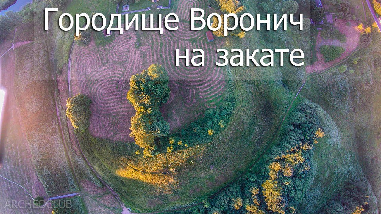 Пушкинские Горы, городище Воронич на закате. Аэросъемка.