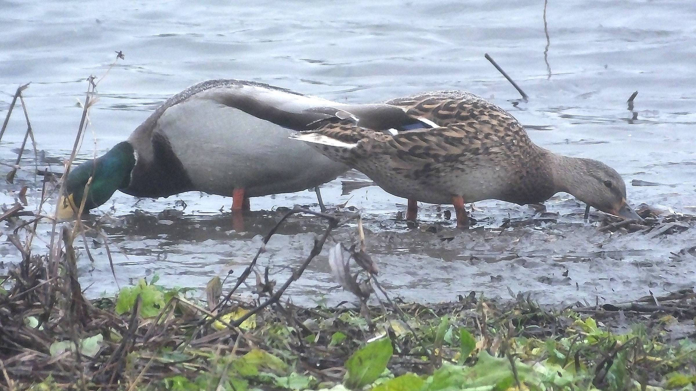 Пришёл на Оку укрепить укрытие от сильных ветров. Весь берег был без рыбаков. Укрытие укрепил, так почему не провести тренировочную съёмку? Хотел приманить уток кусочками батона. Поразительно, но утки на него не набросились. Позже они исправили свою ошибку. Моя ошибка была в том, что поедание батона снимал в дождь с выставленным объективом. Его не нужно выставлять в любую погоду.