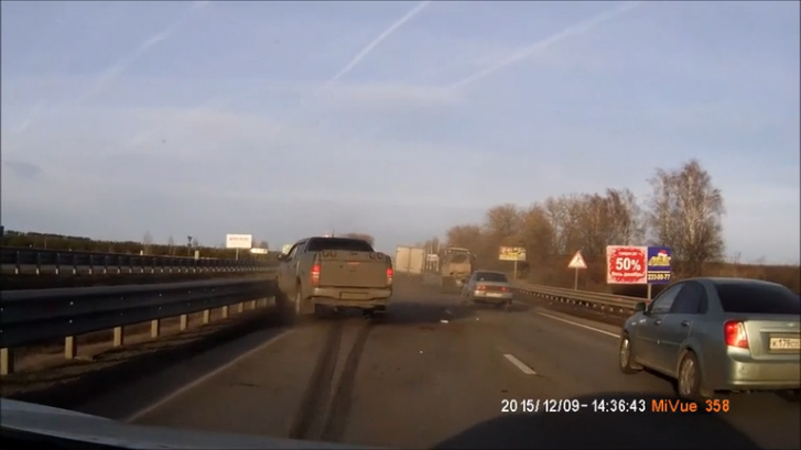 Газель протаранила Toyota HILUX. ДТП произошло на трассе Воронеж - Медовка (09.12.15.) #дтп #авария #регистратор