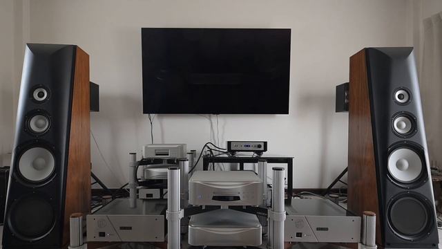 Pre Amp : SMc VRE 1 c / SACD Player : Esoteric Grandioso K1X/Esoteric Grandioso PS 1 External Power supply / Master Clock : Esoteric Grandioso Master clock G1X / Power Amp : SMC Audio GT-21 Signature Edition / Loudspeaker : Thiel CS 7.2 /Furutech Flux-50 NCF 6 /J&K Audio Level 3 - Ultra isolation transformer /Hifistay Ballerino 88 Power cable Pre Amp : Neotech NEP-1001 Power-cable+ IeGO Pure Silver Power Plug US male female + Furutech Flux-50 NCF SACD : IeGo L70810Mk2 Power-cable + Furutech Flux-50 NCF PS1 External Power supply : Furutech NanoFlux Power cable + Furutech Flux-50 NCF Master Clock/ Power Amp : Furutech Project V1 Power Cable + Furutech Flux-50 NCF Power Distributor : Furutech e-TP 809 NCF /Furutech Project V1 Power Cable J&K Audio Level 3 - Ultra isolation transformer : Furutech NanoFlux Power cable SACD Player to Pre Amp : Audioquest Wel Signature (XLR) Pre Amp to Power Amp : Furutech Line Flux NCF (XLR) Digital cable Master Clock to SACD Player : Shunyata SIGMA Clock-50 Speaker Cable Albedo Solid Pure Silver monocrystal + IeGo pure silver spade YS-020(Ag-Au)