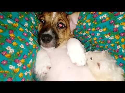 щенок с хомячком дружно спят..............................................................................................................................