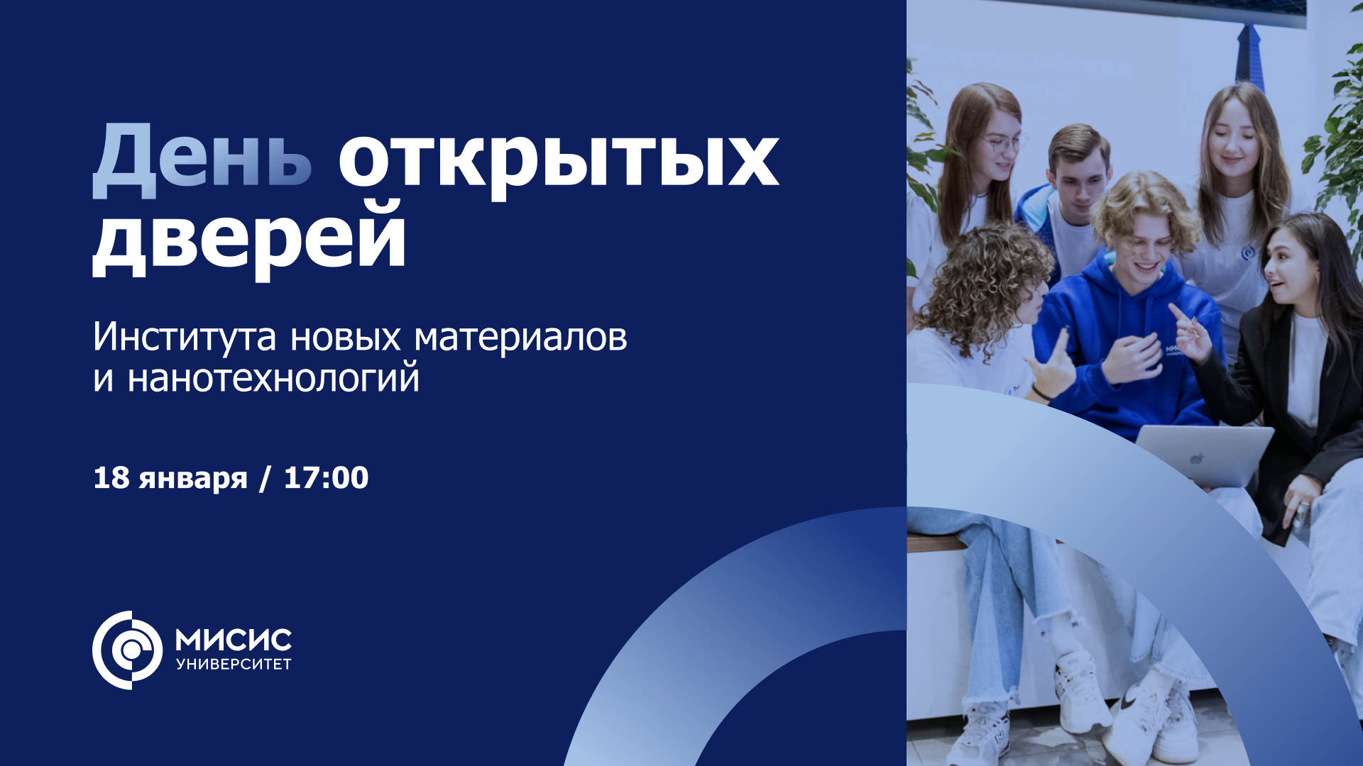 18 января в онлайн-формате прошел День открытых дверей Института новых материалов и нанотехнологий Университета МИСИС. Представители дирекции и выпускники ИНМиН рассказали про: – направления подготовки, на которые осуществляется прием в 2023 году; – образовательный процесс; – научно-исследовательскую работу студентов; – карьерные перспективы. Узнать о поступлении в Университет МИСИС подробнее можно в специальном разделе на сайте: https://misis.ru/applicants/