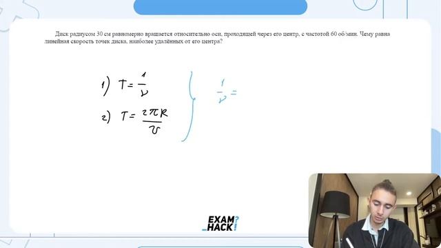 Диск радиусом 30 см равномерно вращается относительно оси, проходящей через его центр, с - №26025
