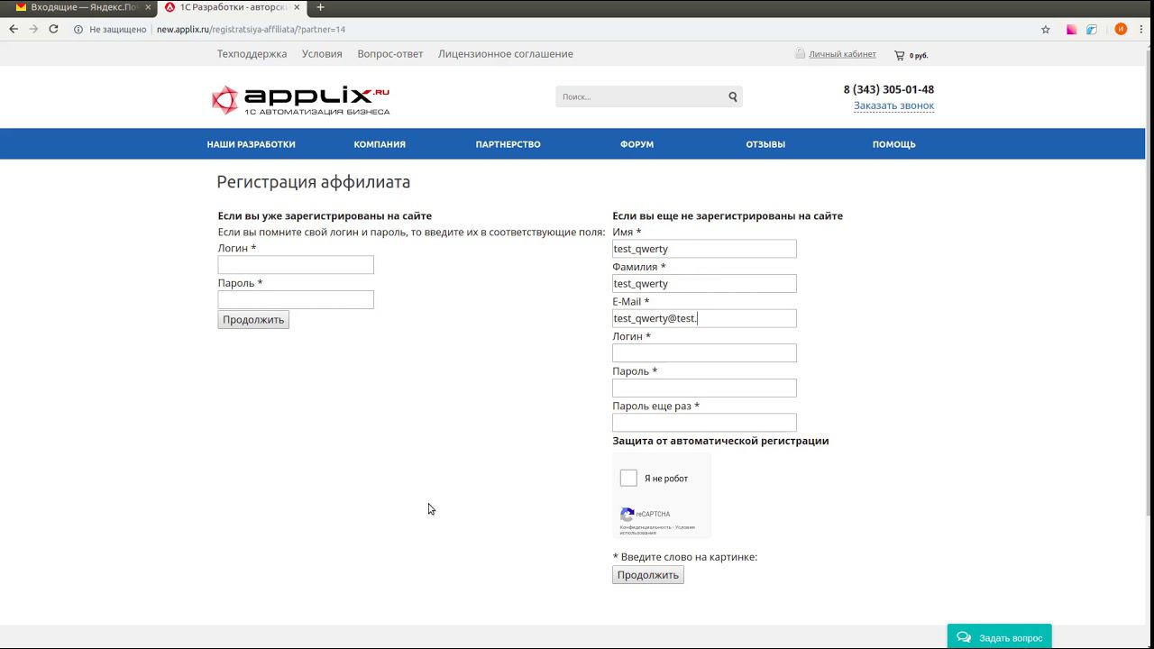 регистрация нового пользователя по ссылке аффилиата