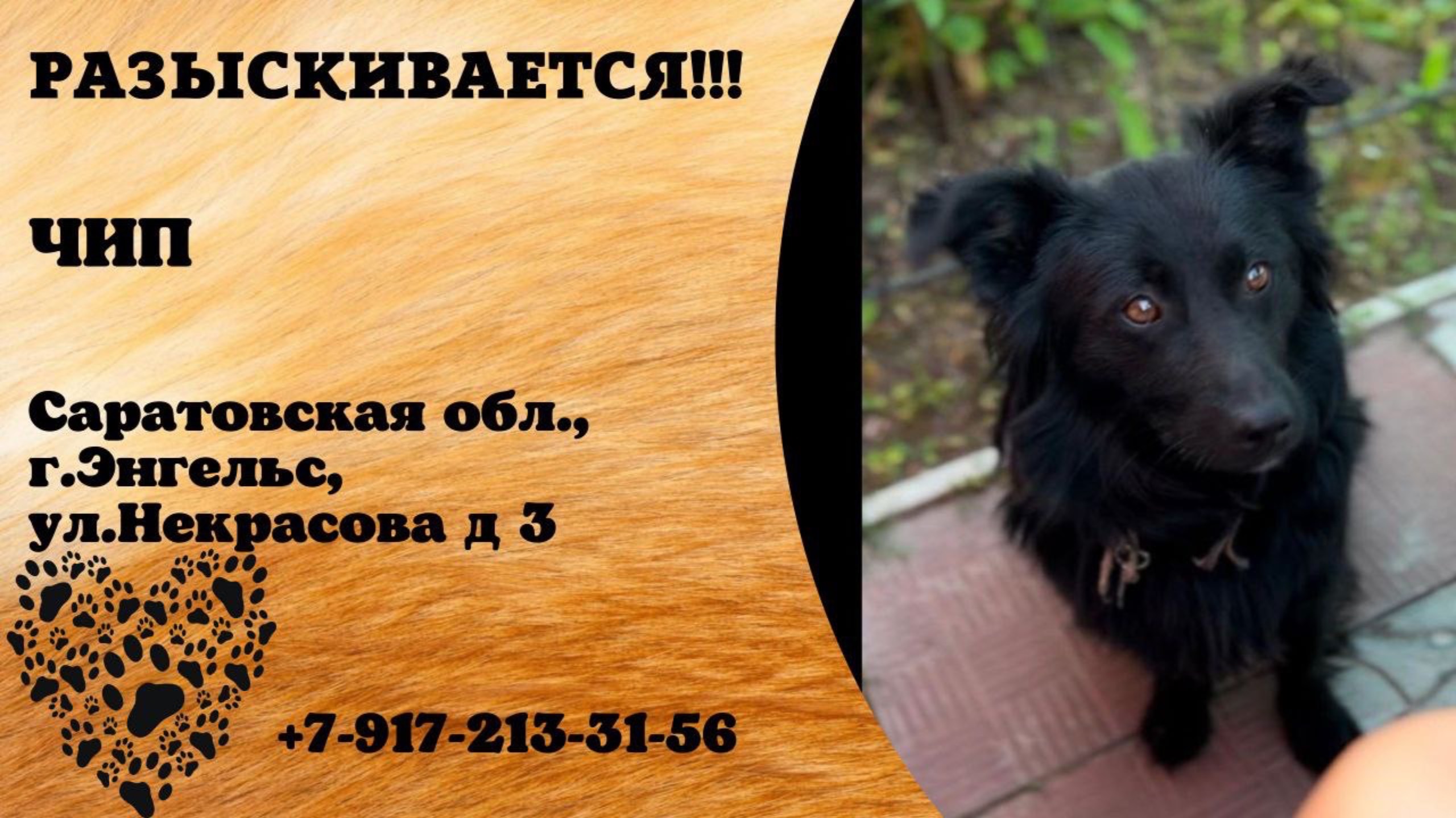 Саратовская Энгельс Пропала собака 08.01 Пропал пес дворняжка Чип, мальчик,полностью черный с белым пятном на груди,выбежал со двора ул.Некрасова д.3. Имя хозяина: Асия Телефон: +7 917 213-31-56 Инфо https://vk.com/wall-198815410_170727 #пропала_собака#саратов