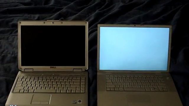 Here we have the above computers competing in a test to see who boots completely first. I'll give you some specs on the two laptops. DELL INSPIRON 1420 Processor: Intel Core 2 Duo T5750 @ 2.0 GHz RAM: 3GB DDR2 Hard Drive: SATA 250GB Operating System: Windows Vista Home Premium MACBOOK PRO 15-INCH Processor: Intel Core 2 Duo @ 2.4 GHz RAM: 2GB DDR2 Hard Drive: SATA 250GB Operating System: Mac OS 10.5 Black Leopard