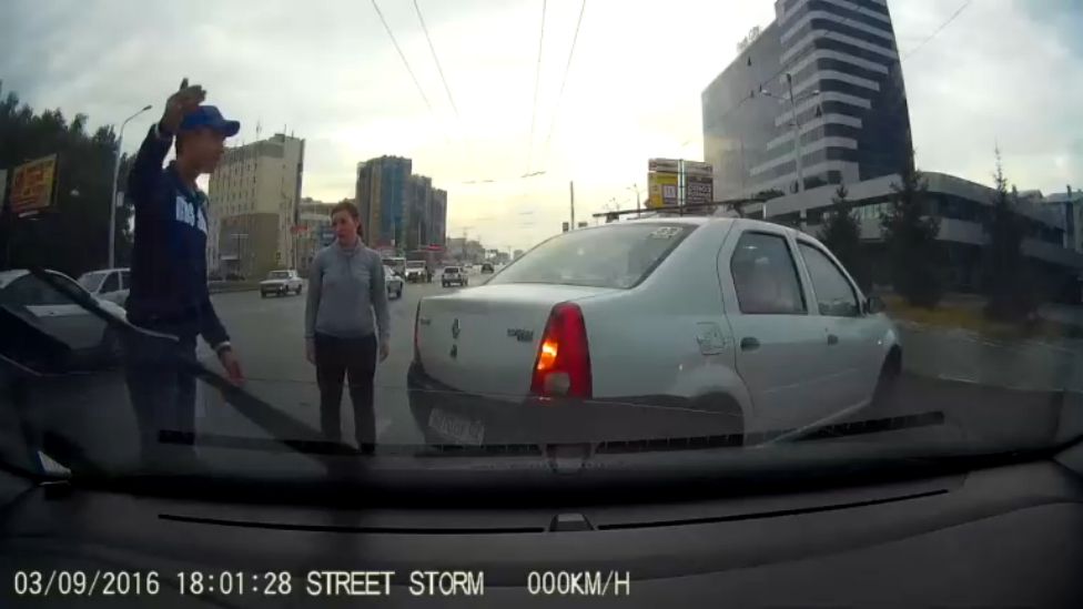 Выскочила перед потоком машин, начавших движение на зеленый. И еще права качает ведь! Задела машину слева Солярис: разбиты левая фара и бампер.