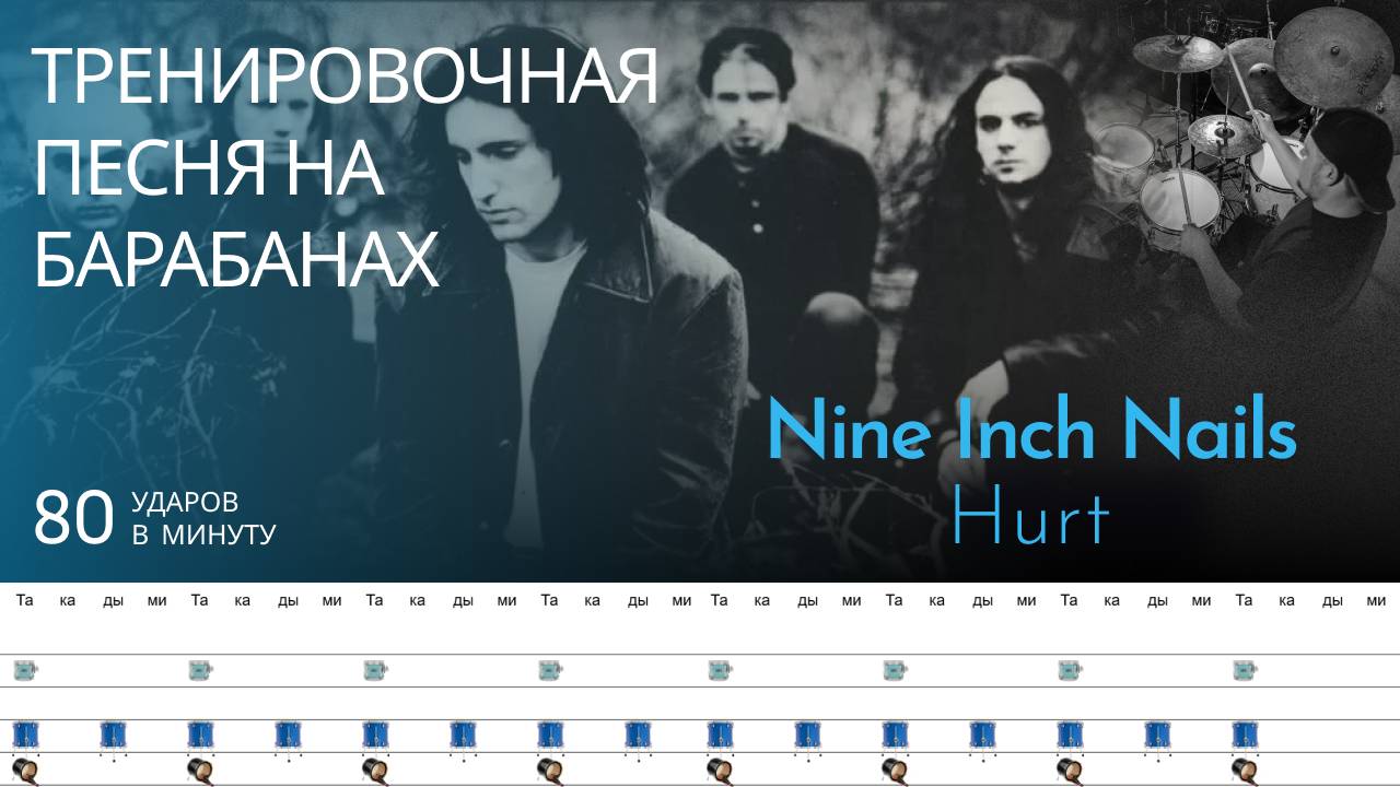 Nine Inch Nails - Hurt / 80 bpm / Тренировочная песня для барабанов