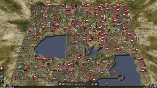 Здесь коротко и наглядно показана работа отлаженной ЖД сети. Маленькая карта 128х128, поезда не разворачиваются на станциях, мосты, тоннели, минимум перекрестков, около 80 составов на рельсах в текущий момент.