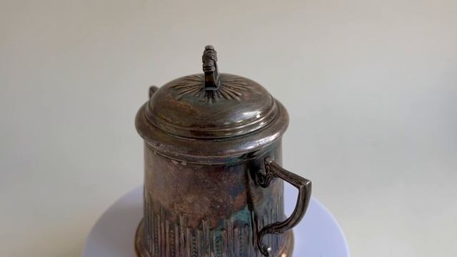 Кофейник и сахарница с серебрением - https://gallerique.ru/tproduct/236156871962-kofeinik-i-saharnitsa-s-serebreniem Посеребренный набор XIX века, состоящий из чайника (кофейника) и сахарницы. Чайник украшен геометрическим орнаментом и оснащен удобной ручкой из эбенового дерева. Сахарница имеет идентичный орнамент по периметру и обладает фигурными ручками, которые не только добавляют изделию элегантности, но и облегчают использование в быту. Крышки набора дополнены ручками в виде колец с объемным узором и завершающим элементом в виде маленького шарика. Со временем чайник и сахарница покрылись патиной, что свидетельствует о серебрении поверхности изделий. Набор подойдет ценителям эстетики старинных вещей и задаст особый тон утренним ритуалам. Чайник Высота: 15 см Диаметр основания: 9,5 см Диаметр от носика до ручки: 16,5 см Сахарница Высота: 11 см Диаметр основания: 8 см Диаметр от ручки до ручки: 11 см Материал: серебрение Состояние: отличное винтажное Период: XIX век