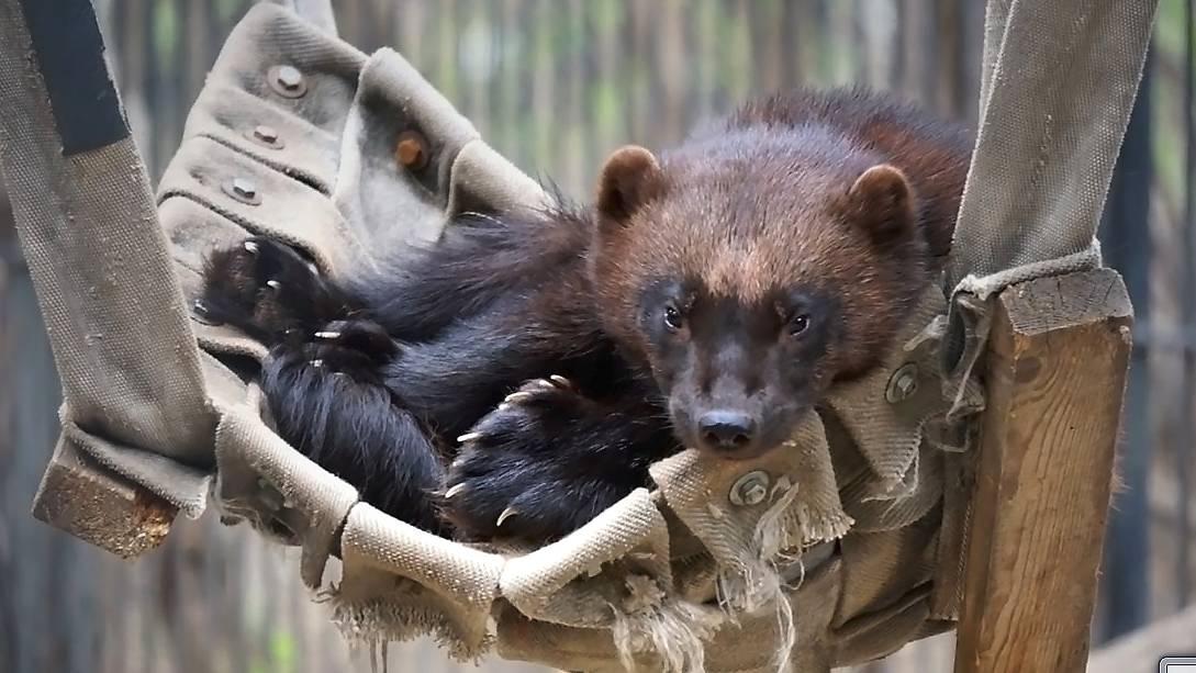 Росомаха кайфует в гамаке, где раньше резвились медвежата Фима и Дуся.