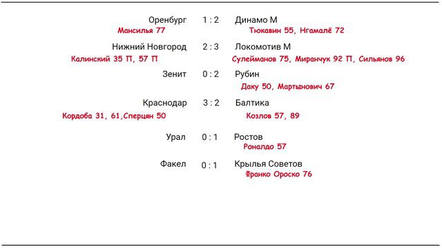 Чемпионат России (РПЛ). 21 тур. Результаты. Расписание. Таблица.