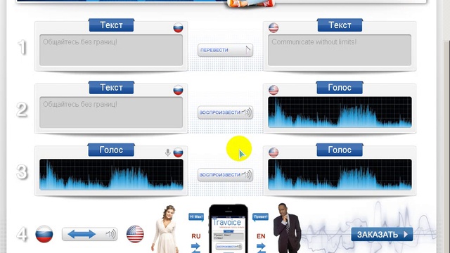 http://travoice.com/ Travoice Переводчик голоса онлайн Необходимо установить Google Chrome - сервис заточен под этот браузер !