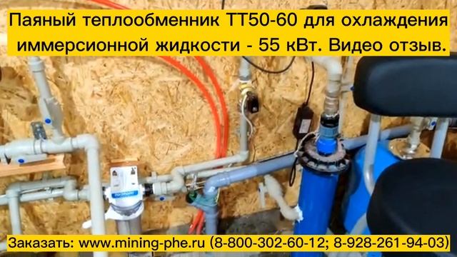 Цена 58 800 руб. (на дату 15.12.22г.) Теплообменник ТТ50-60 охлаждает майнинг ферму. Аппарат обладает следующими характеристиками: Мощность - 55 кВт. Иммерсионную жидкость охлаждает с 65С до 45С Охладителем является вода, с температурой 15 С Патрубки: Ду25 ("1 дюйм"), наружная резьба Поверхность теплообмена (3 м2) - 60 пластин Теплообменник специально разработан для работы с вязкими иммерсионными маслами!
