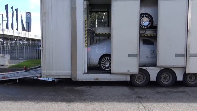 Вид разгрузки из нутри фургона крытого автовоза.