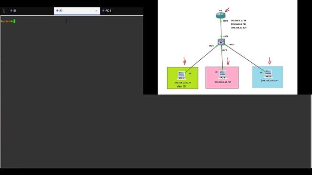 Learn how to configure router interface with 3 subinterfaces and how to create vlans and assign port to vlans on a Cisco switch.