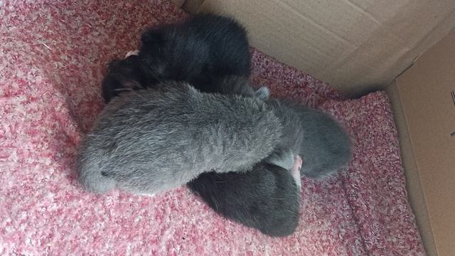 На переднем плане серая девочка, остальные- мальчуганы. Мама и покормила и пошла кушать сама, а эти хвостики стали улечься поудобнее и подремать ♥️