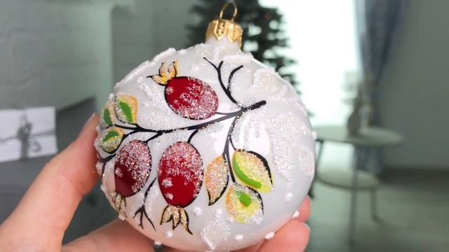 Елочный шар ШИПОВНИК, белый, 85 мм, С1942-бел