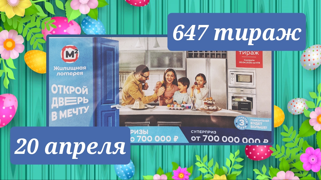 ЖИЛИЩНАЯ ЛОТЕРЕЯ 647 ТИРАЖ от 20 апреля 2025 года. Проверить тиражный билет СТОЛОТО.