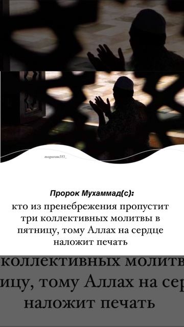 مَن تَرَكَ ثلاث جُمَعٍ تَهاوُنا بها .طَبَعَ اللّهُ على قَلبهِ кто из пренебрежения пропустит три коллективных молитвы в пятницу, тому Аллах на сердце наложит печать Пророк Мухаммад(с):#мухаммад #пророкмухаммад #напоминание