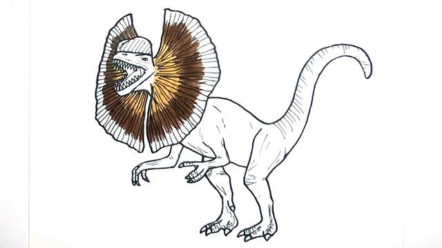Рисование и раскраска дилофозавра из парка юрского периода - раскраски динозавров для детей