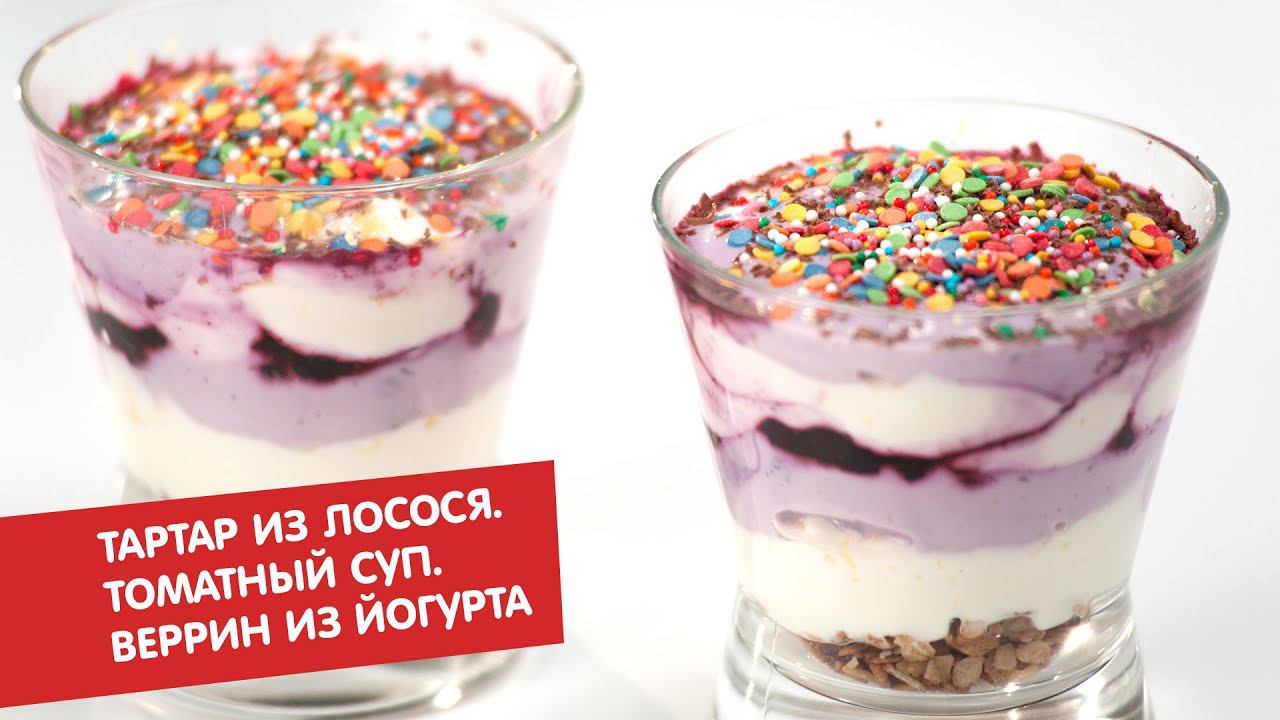Тартар из лосося с авокадо. Томатный суп с беконом. Веррин из йогурта | Первое, второе, третье
